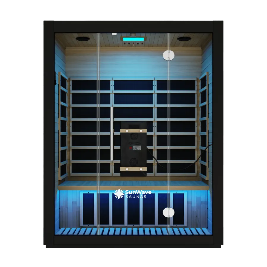 Transform your home into a wellness retreat with our 3-person infrared sauna, featuring soothing chromotherapy lighting and a sleek full-glass front. Precision infrared panels provide deep, even heat to relax muscles and rejuvenate your body. Spacious and refined, it’s the perfect blend of comfort, connection, and daily escape.